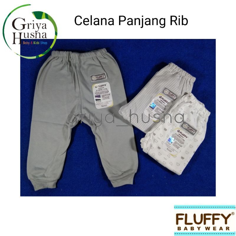 Harga Fluffy - Abu - 3 pcs Celana Panjang Bayi Rib Polos Seri grey
