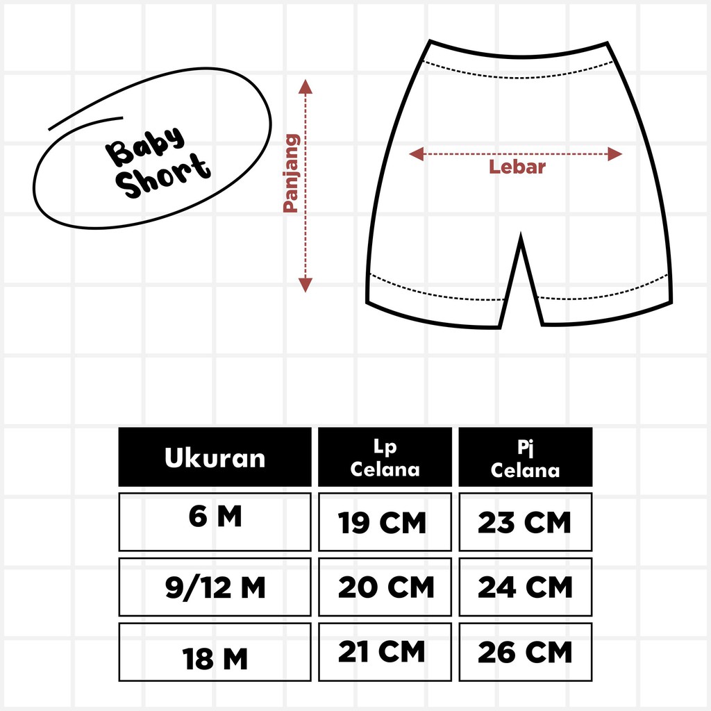 Produk ini memiliki 3 Variasi Ukuran yaitu : 6M,9-12M,18M,